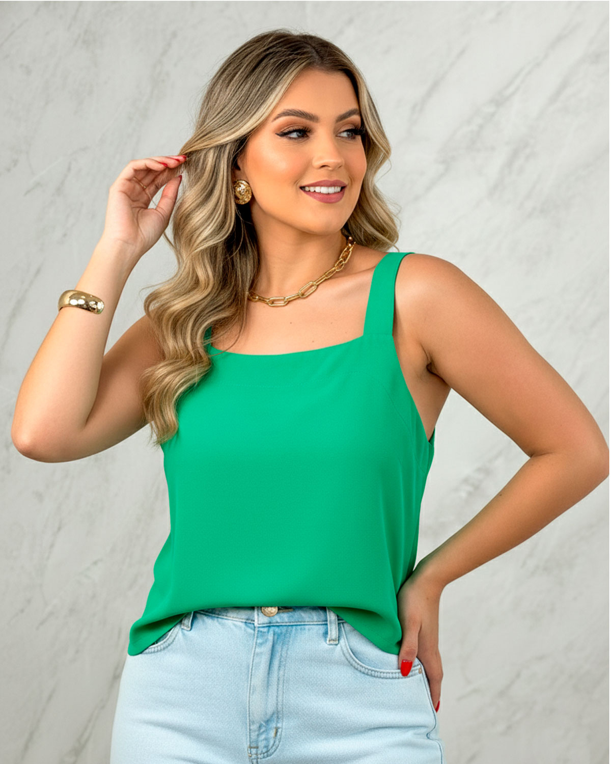 Transforme seu look com a Regata Feminina de Alça Larga em Viscose, perfeita para quem busca elegância e conforto em todas as ocasiões!