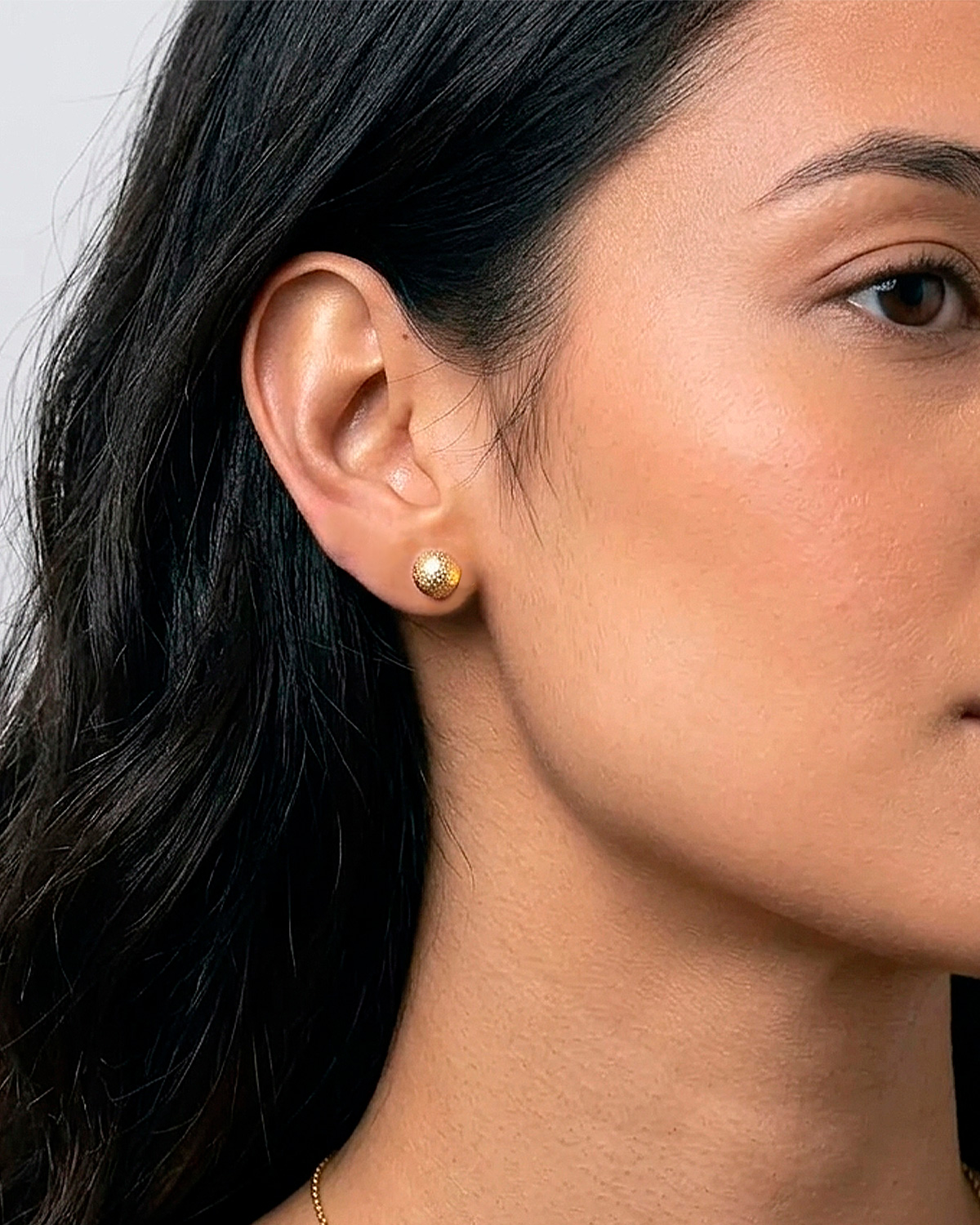O Brinco Bola Fosca banhado a ouro 18k é uma peça elegante e moderna, perfeita para quem busca um acessório com acabamento diferenciado e estilo sofisticado.