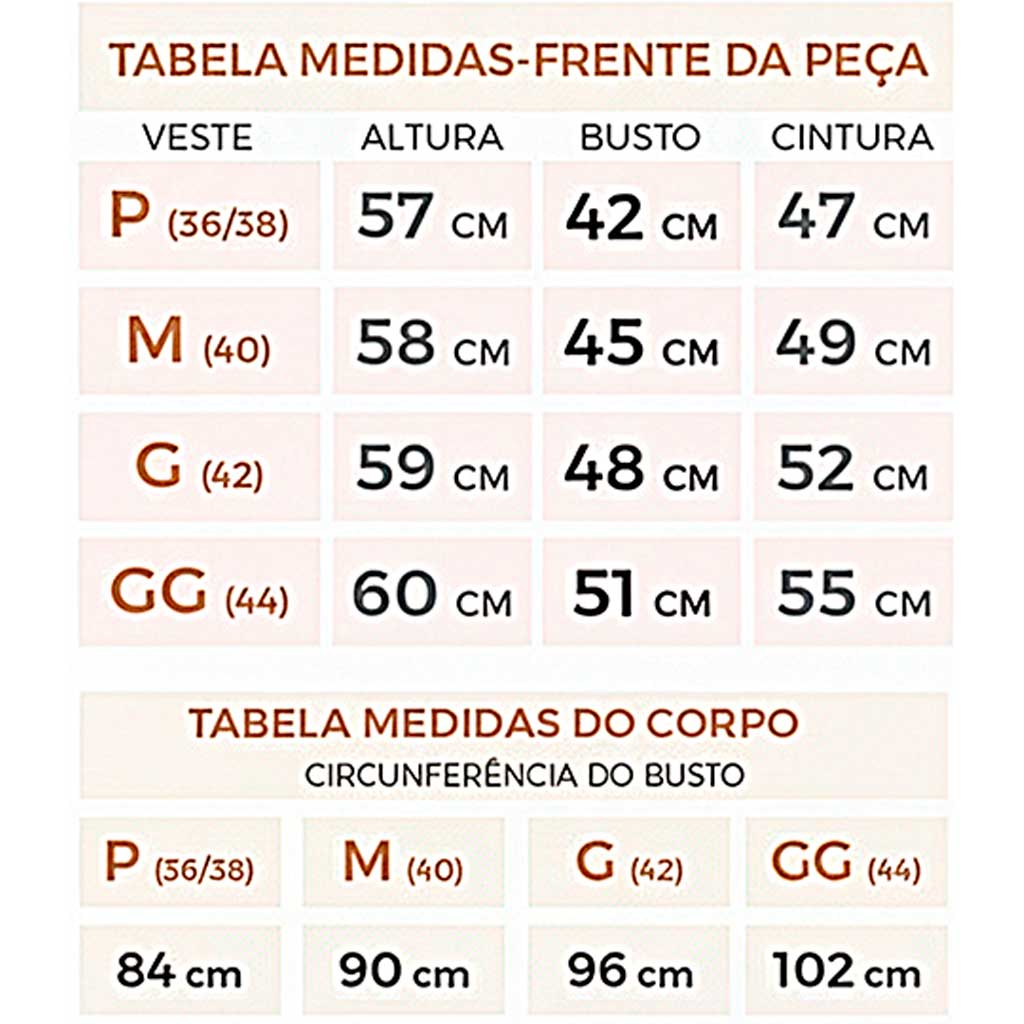 Tabela de Medidas: